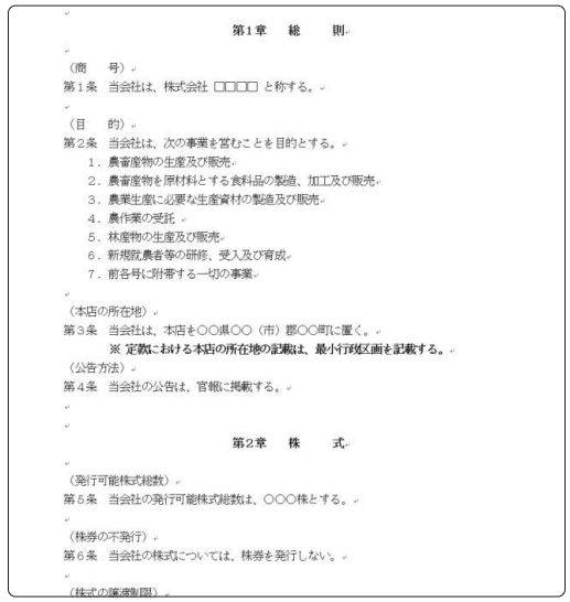 農林水産省が提供する定款サンプルをダウンロードして、ご利用できます。